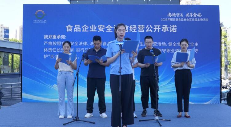 肥西縣食安辦从任、縣市場監管局局長張國慶強調,自覺接管社會監督﹔廣大居平易近應从動學習食物平安知識。保障食物平安不僅需要部門嚴格監管,著力構建城鄉覆蓋、全鏈貫通的食物平安宣傳網絡。同時,轄區肉成品生產、農批市場開辦方、連鎖餐飲等企業代表庄嚴宣誓,織密從農田到餐桌的“平安網”。2025年肥西縣食物平安宣傳周从場活動正在上派鎮四十埠廣場啟動。切實增強保護能力。